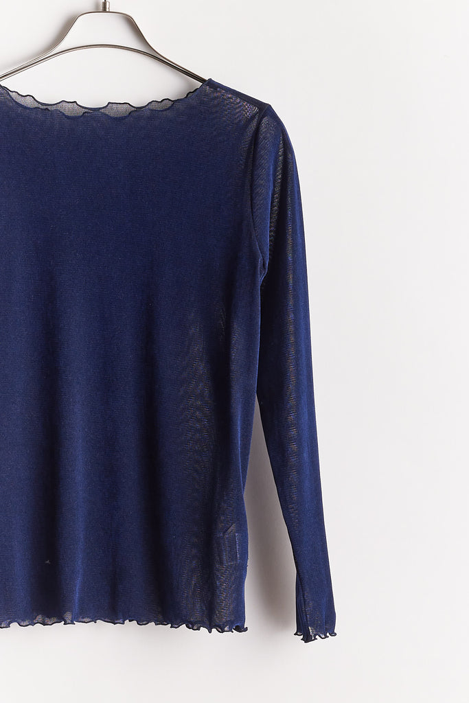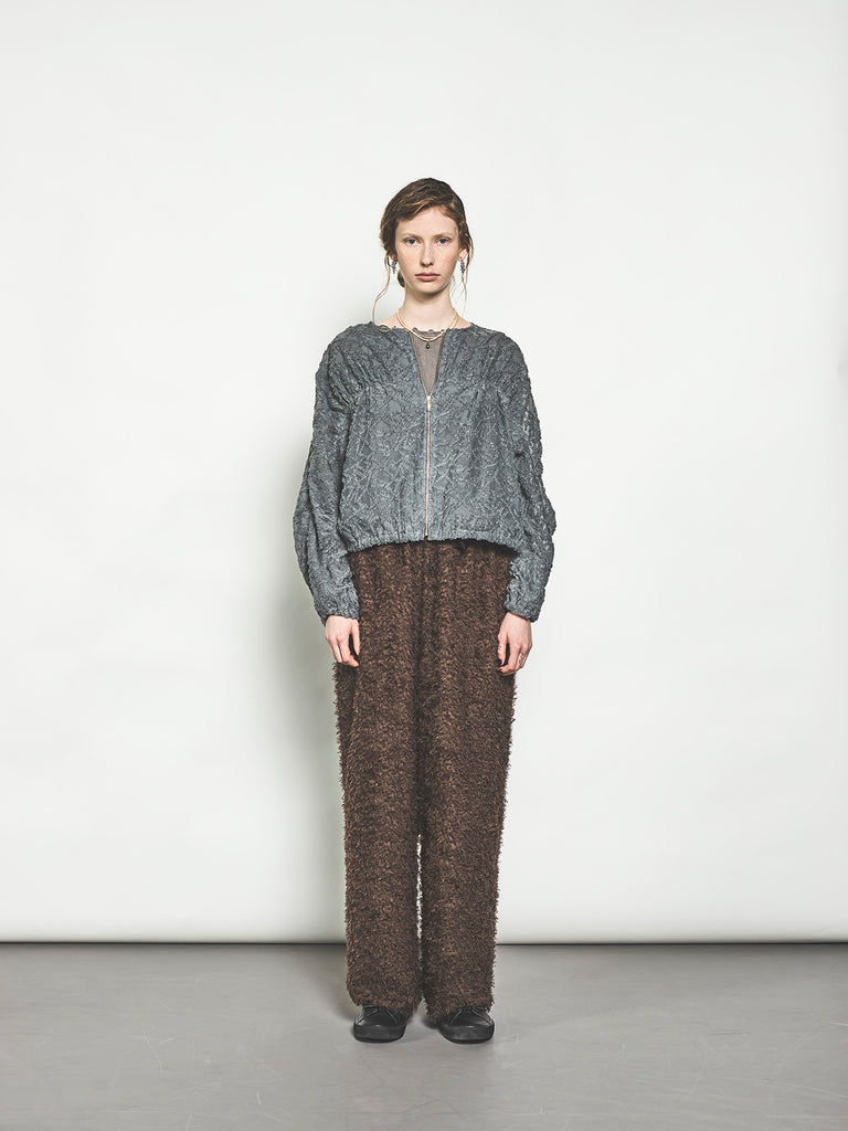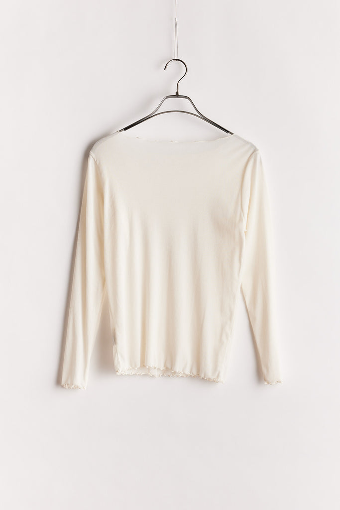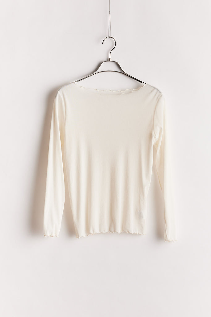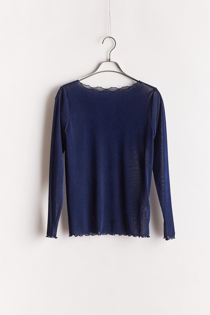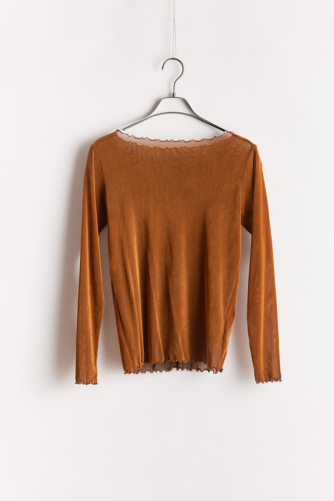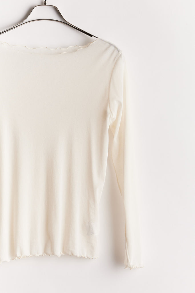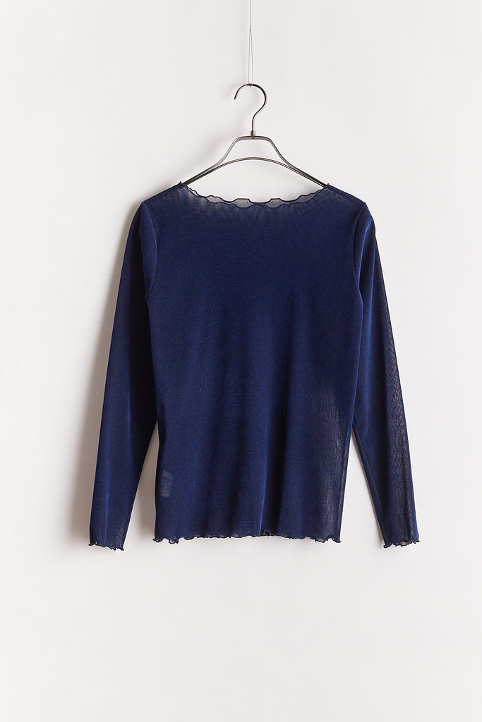 レイヤードスタイルやインナーとして着こなしにニュアンスをプラスしてくれるカットソー 。ナイロンのチュールに全面フロッキー加工をした少し特殊な素材でベロアのように重たくなく、やや透け感と、上品な毛並みと光沢がモダンな印象です。程よくコンパクトなサイズ感で、薄手で伸縮性もあるので着やすい一枚。シャツやジャケットのインナーとしても使いやすい着まわしアイテム。